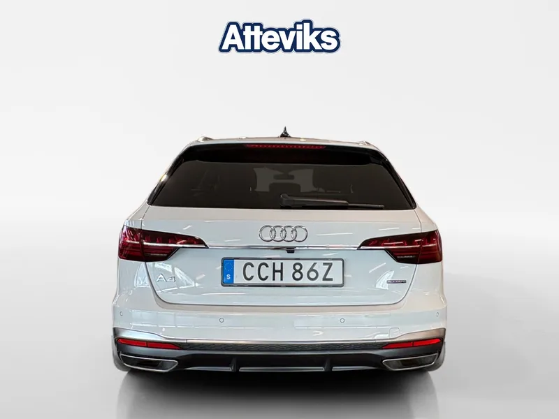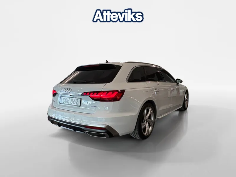 Audi A4 Avant 40 TFSI quattro S Tronic 2023 i mycket fint skick. En sportig och bekväm kombi med 204 hk, mildhybridteknik och fyrhjulsdrift som ger trygg och stabil körning året runt. Bilen är snyggt specad i Glaciärvit metallic med S line-paket och tonade rutor som ger ett exklusivt och sportigt intryck. Utrustad med Matrix LED-strålkastare för optimal sikt samt dragkrok för extra flexibilitet i vardagen. En välbalanserad bil som passar lika bra för pendling som för längre resor, med hög komfort, bra prestanda och praktiska egenskaper. Alla våra bilar är testade och Varudeklarerade! För mer information eller bokning av provkörning (ring innan ni kommer) Kontakta säljare Kim Svensson kim.svensson@atteviks.se alt. 036-34 88 75. Vi tillhandahåller förmånlig finansiering, garanti och försäkring. Trygghetsgaranti 12/24/36 månader. Max 20.000mil / 10 År Uppläggnings- och administrationsavgift 995kr tillkommer. Varmt välkommen till Atteviks Audi Jönköping! Öppettider | Mån-Fre 9-18, Lördag 10-14|