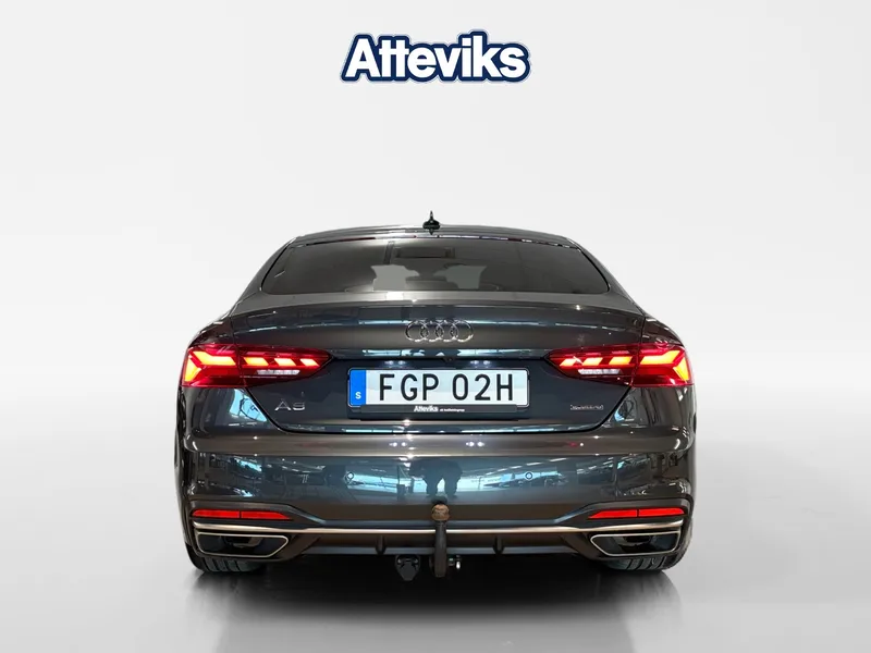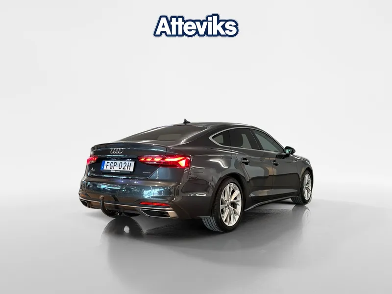 Audi A5 Sportback 45 TFSI Quattro – 2021 | Sportig, trygg och bra teknik Audi A5 Sportback i mycket fint skick – en bil som kombinerar sportig design med hög komfort och imponerande prestanda. Den kraftfulla 45 TFSI-motorn tillsammans med Audis Quattro fyrhjulsdrift ger en stabil, säker och dynamisk körupplevelse oavsett väglag, perfekt för nordiska förhållanden. Bilen är utrustad med avancerade Matrix LED-strålkastare som anpassar ljusbilden automatiskt för bästa möjliga sikt utan att blända mötande trafik, vilket höjer både säkerhet och körkomfort vid mörkerkörning. Den praktiska dragkroken gör bilen redo för allt från släp till cykelhållare, och med backkamera blir parkering både enklare och tryggare i alla lägen. Den stilrena Sportback-designen ger ett exklusivt intryck samtidigt som du får den praktiska flexibiliteten från en halvkombi. Invändigt möts du av en modern och påkostad miljö med hög materialkvalitet och smart teknik som gör varje resa till ett nöje. Det här är helt enkelt en bil för dig som vill ha en perfekt balans mellan prestanda, design och funktionalitet – redo att leverera körglädje varje dag. För mer information eller bokning av provkörning är du välkommen att höra av dig till säljare Colin Bolgakov på 036 34 88 65 eller colin.bolgakov @ atteviks.se. Välkommen till Atteviks Jönköping! Öppettider mån-fre 9-18 - lör 10-14