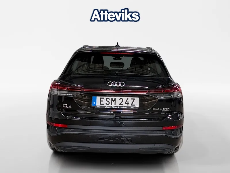 Drömmer du om en elbil som kombinerar kraft, stil och premiumkänsla på riktigt? Audi Q4 50 e-tron quattro levererar med sina 299 hästkrafter och fyrhjulsdrift en både trygg och imponerande körupplevelse året runt. Den svarta lacken tillsammans med svart optik ger ett sportigt och exklusivt uttryck som verkligen sticker ut. Invändigt möts du av en modern och komfortabel miljö med Proline Advanced, där teknik och körglädje står i fokus. Den tysta och responsiva eldriften gör varje resa smidig och behaglig, samtidigt som du kör mer hållbart. Med dragkrok blir bilen dessutom lika praktisk som stilren – perfekt för både vardag och fritid. Alla våra bilar är testade och Varudeklarerade! För mer information eller bokning av provkörning (ring innan ni kommer) Kontakta säljare Kim Svensson kim.svensson@atteviks.se alt. 036-34 88 75. Vi tillhandahåller förmånlig finansiering, garanti och försäkring. Trygghetsgaranti 12/24/36 månader. Max 20.000mil / 10 År Uppläggnings- och administrationsavgift 995kr tillkommer. Varmt välkommen till Atteviks Audi Jönköping! Öppettider | Mån-Fre 9-18, Lördag 10-14|