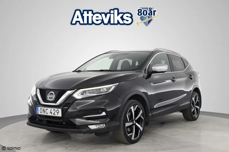 Just nu har vi en Nissan Qashqai 1.2 DiG-T Manuell i lager med den högsta utrustningsnivån Tekna – en populär och lättkörd SUV som kombinerar komfort, funktion och stil. Bilen är utrustad med skinnklädsel, panoramaglastak, backkamera och mycket mer, vilket ger en ljus, bekväm och modern körupplevelse. Ett utmärkt val för dig som söker en välutrustad bil med smidig manuell växellåda. På Atteviks Begagnatcenter i Jönköping, beläget på John Bauergatan 1, erbjuder vi en trygg och smidig bilaffär med öppettider som passar din vardag. Vi har öppet måndag till fredag 9-18 och lördag 10-14. För frågor om denna bil är du varmt välkommen att kontakta ansvarig säljare Alexander Fäldt på 036-34 88 87 eller via e-post alexander.faldt@atteviks.se . Hos oss får du flexibel finansiering via Volkswagen Finans, möjlighet att teckna serviceavtal och tillgång till ett stort utbud av tillbehör. Du kan även välja vår trygghetsgaranti på 6 till 36 månader, som gäller tills bilen når det första av 10 års ålder eller 20 000 mil. Kostnaden för garantin startar på 3 495 kronor för 6 månader. Alla våra bilar är inbytestestade och varudeklarerade, och samtliga elbilar är dessutom batteritestade för extra trygghet. På det annonserade priset tillkommer en registrerings- och administrationsavgift på 995 kronor.