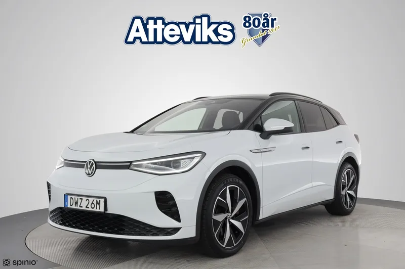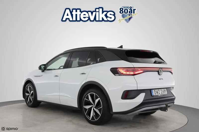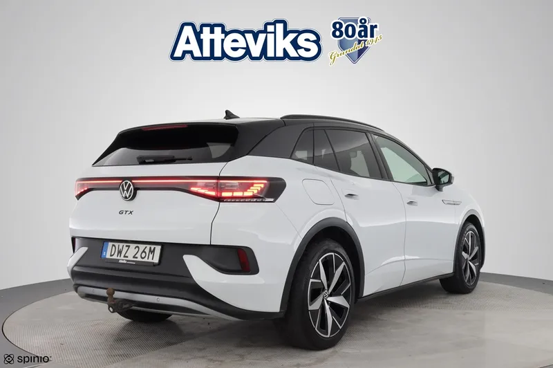 Just nu har vi en Volkswagen ID.4 GTX i lager – en kraftfull och välutrustad el-SUV med fyrhjulsdrift som erbjuder både prestanda och avancerad teknik. Bilen är utrustad med Assistanspaket Plus med 360-kamera, elbaklucka, döda vinkeln-varning, IQ.Light LED-strålkastare Matrix samt elektriskt utfällbart drag. En modern och sportig elbil som kombinerar komfort, säkerhet och funktionalitet i toppklass.