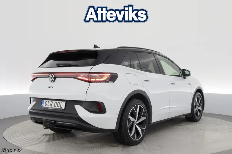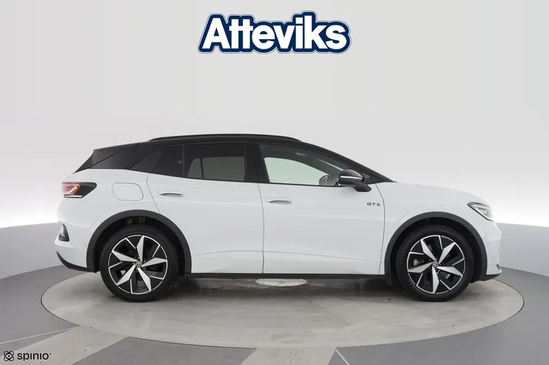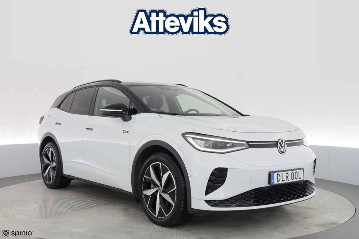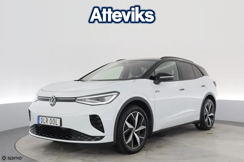 Just nu har vi en Volkswagen ID.4 GTX från 2023 i lager – en sportig och välutrustad el-SUV med fyrhjulsdrift och cirka 8 880 mil på mätaren. ID.4 GTX erbjuder stark prestanda i kombination med hög komfort och modern teknik. Bilen är utrustad med dragkrok, 360-kamera, elbaklucka och mycket annat som gör både vardagskörning och längre resor smidiga och trygga. På Atteviks Begagnatcenter i Jönköping, beläget på John Bauergatan 1, erbjuder vi en trygg och smidig bilaffär med öppettider som passar din vardag. Vi har öppet måndag till fredag 9-18 och lördag 10-14. För frågor om denna bil är du varmt välkommen att kontakta ansvarig säljare Alexander Fäldt på 036-34 88 87 eller via e-post alexander.faldt@atteviks.se . Hos oss får du flexibel finansiering via Volkswagen Finans, möjlighet att teckna serviceavtal och tillgång till ett stort utbud av tillbehör. Du kan även välja vår trygghetsgaranti på 6 till 36 månader, som gäller tills bilen når det första av 10 års ålder eller 20 000 mil. Kostnaden för garantin startar på 3 495 kronor för 6 månader. Alla våra bilar är inbytestestade och varudeklarerade, och samtliga elbilar är dessutom batteritestade för extra trygghet. På det annonserade priset tillkommer en registrerings- och administrationsavgift på 995 kronor. Atteviks har varit verksamt i Jönköping sedan 1945, då Sigvard Attevik startade försäljning av Volkswagen. Företaget ägs och drivs fortfarande av familjen Attevik och präglas av lång kontinuitet, stark lokal förankring och ett väl inarbetat varumärke. Det ger dig som kund en trygg bilaffär där erfarenhet och förtroende står i centrum.